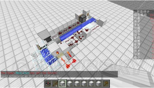 主要是利用手持鱼竿时可以右键使用的方块不会抛出鱼线的原理来做的,因为是半自动的所以非常简单,抛出鱼线以后,一直按住右键,粘性活塞会把炼药锅推出,这样就不会收回鱼线了.当鱼上钩时,鱼钩下降,拌线上升,活塞收回,鱼线就可以马上收回防止鱼跑掉.