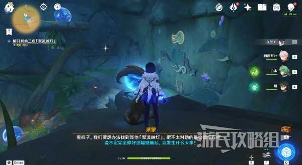 到达终点后,跟随指引解开第一座聚流映灯。然后需要分别解开其他三座聚流映灯。