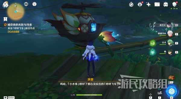 跟随任务指引跳下高台,可以在下方看到小水珠,跟随小水珠前进。