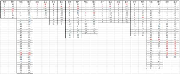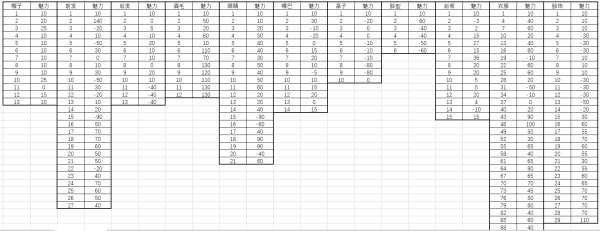 假定每个部位的一号部件魅力都为10,然后对应魅力值的增增减减算出来的