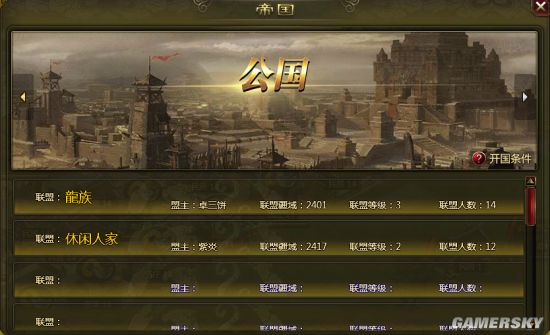 连续三天圈地排名第一且圈地超过四千,就可以成为帝国,帝国成员每日可以领取额外银锭!每天14:30刷新!且会在聊天中有特别的标识!还能自己更改国号!更有王国、公国称号等着你!快和联盟同伴们一起接受这份荣誉吧!