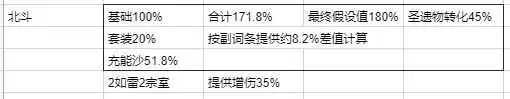 北斗如果是单雷后台的打法,那么自身80点能量的要求就显得非常严苛。在2.0版本之前单雷北斗就已经必须带充能沙,否则大招完全跟不上输出节奏。在2.0版本之后北斗使用到4绝缘套+充能沙的组合,充能效率将轻松达到170%甚至180%以上,按180计算则能够转化为45%增伤,比原本的2如雷2宗室高10%增伤,如果武器为天空之傲,充能将会达到200%开外,转化的增伤就会更高。如果在此之前北斗身上的圣遗物并不是一身极品,那么是非常值得一刷的,杯子位置同样是攻击杯或雷伤杯2选1,具体看词条。