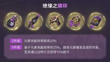 这套圣遗物两件套效果是提高20%的元素充能,四件套则是根据自身充能效率的25%,为大招提供相应增伤。