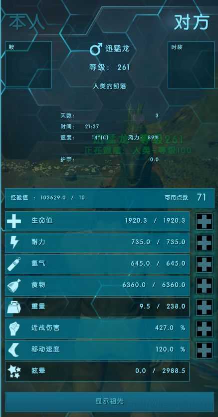 下图为遗传到更高属性的公龙,由于耐力等副属性的属性点比较多,对应龙的等级也对应高出许多。