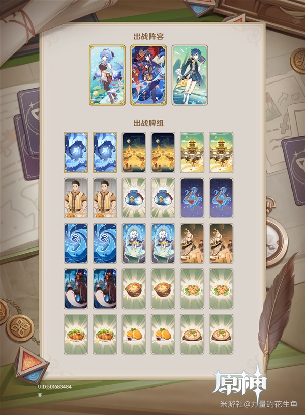 卡组主要是干饭流,高强度的回血和过牌,保证前排角色可以稳定放出技能,不会因为能量不够而放不出关键技能;