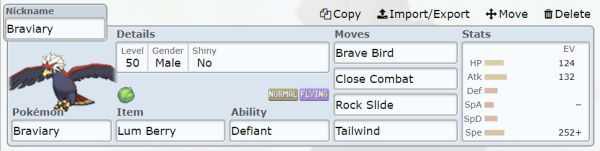 考虑到疯狗虽然已经极速,但仍然还是中速精灵,仅靠多龙的电磁波控速是不够的,考虑加入一个顺风手,使用了银风牌极速勇士鹰,努力上有微调,HP加到16n-1,降低极巨岩开出沙暴后的自伤。