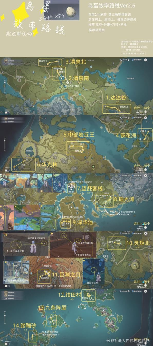 《原神》鸟蛋是做饭的食材之一,鸟蛋分布在地图上各个位置上,想要获取鸟蛋的玩家请看下面由“大白鹅鹅鹅鹅鹅”分享的《原神》鸟蛋高效收集路线推荐,希望对大家有所帮助。