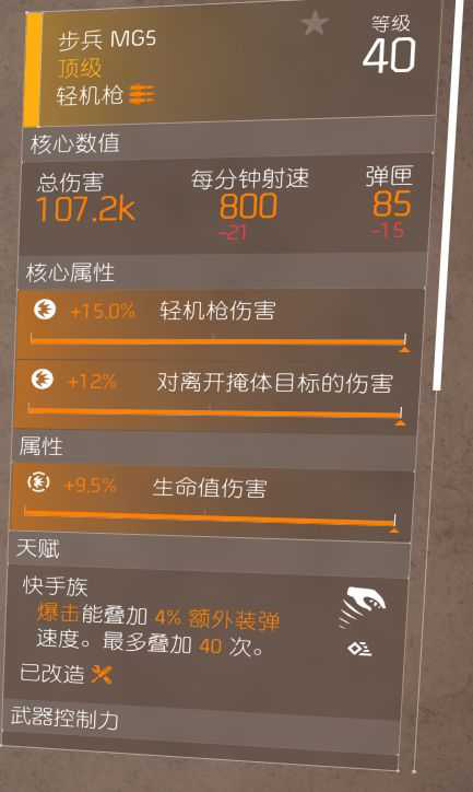 在实战中,队伍有控的情况下,传奇本谈判的清怪速度是非常效率的,所以步兵MG5是目前最好用的。