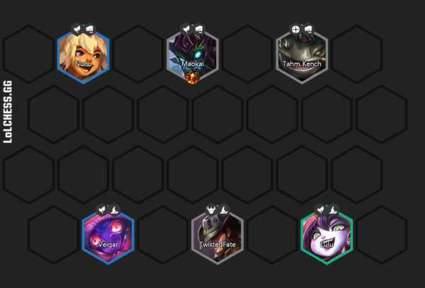 3-2拉6人口,如果连胜的话可以考虑3-1拉6人口,6人口大树、露露、小法、卡牌、努努、塔姆凑4森林3法师3斗士过度,增加了一个努努主要是为了增加阵容的坦度,还是那句话问我们要速7搜牌。