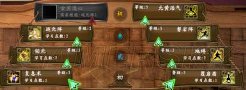 子巧:元黄浩气(加血上限和加防),磐岩阵(加盾),返元阵(群回蓝),韬光(单回蓝)。