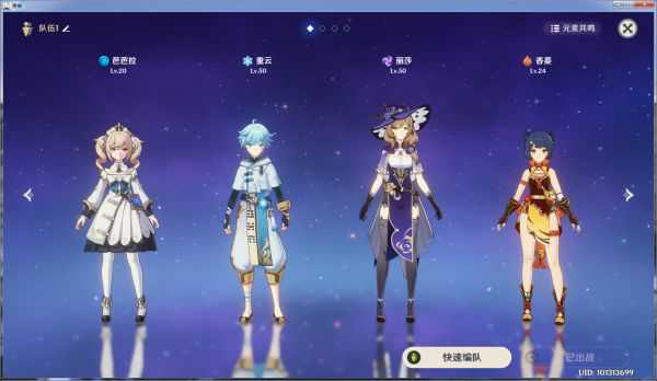 冻结流阵容,以重云为核心,巴巴拉为辅。丽莎为2号C位,香菱为工具人。