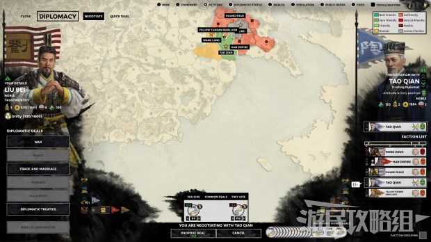 这也是之前说选【黄巾军势力】会比较困难的原因。因为他们没有足够的东西去交换,无法在第一回合中就找到外交关系最好的朋友,只能晚几回合。