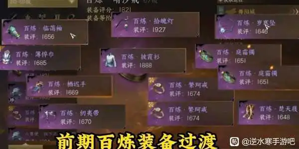 前期百炼装备过度中期百炼武器防御装备横钩四件套,首饰两件套,其他部位使用合适的毒针都是产自于五阳城,后期部分职业各部位的毒针比套装更好。