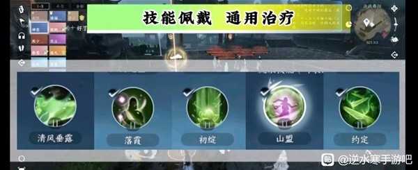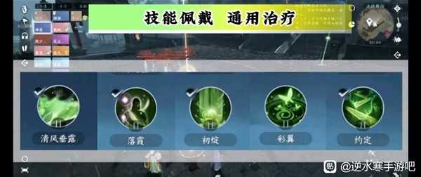 清风垂露,对队友释放,持续回血技能,佩戴可以给队友加气盾。