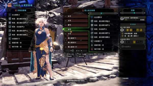 冰弓上个版本应该选风飘,风飘属性高30,这个版本选了冰牙,原因是配了上述技能后,每箭伤害多2-3点,打角龙持平。风飘全克制属性的话持平冰牙,但是会心只有90%。