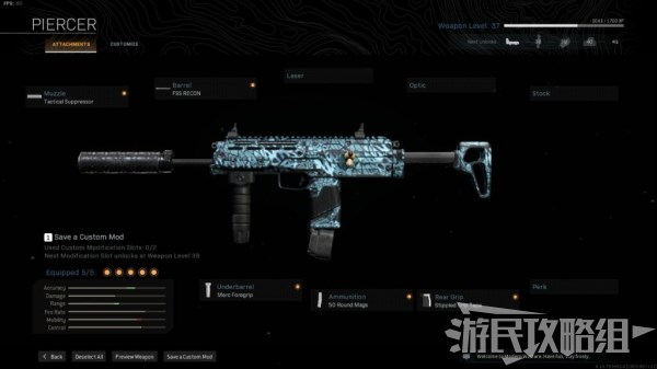 60发弹匣很重要,你需要确保一梭子打上去能把敌人的护甲破坏掉。默认的弹匣容量是为多人模式设计的,不适合战区。