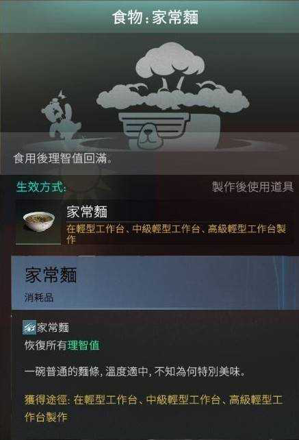 料理『家常面』食用后可恢复100%理智