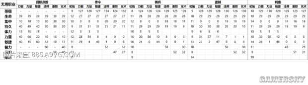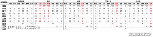 以下表格是根据上述分析所得出的最优加点职业和点数。