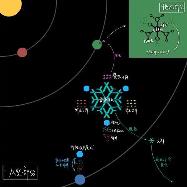 功能:从种子节点上分化,接收恒星的能量并提供给巢穴与地面建筑使用。再次强调,战斗系统是可以自主选择开启或关闭的。