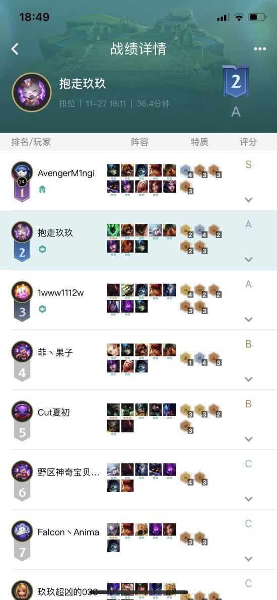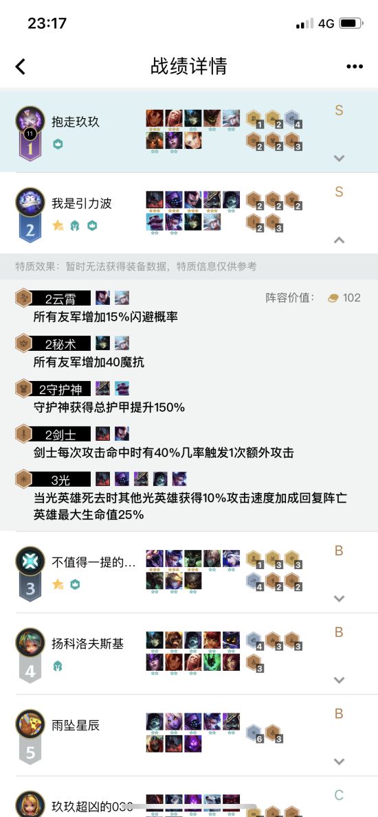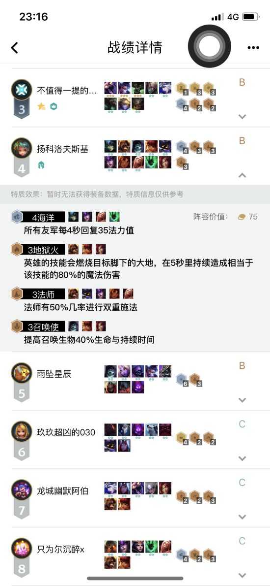 第二名是天胡选手,光剑亚索,基本上满血到就剩下4个人,他没拿到娜美之前打不过老4,我也是没双秘术要被这6法压着打(实在搜不到娜美就下石头人,换奶妈凑双秘术)。