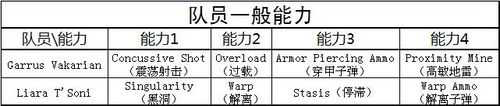 Incendiary Ammo(燃烧子弹):激活时,武器发射的子弹将使敌人着火,火焰穿透盔甲并将它们点燃。这将会暂停生命回复,并可能导致无防备的生命体惊慌。非生命体对火焰伤害有抗性。反生命回复属性对Krogan与Vorcha尤其有效。