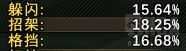 图中的数据就是你的四维属性:躲闪5%,招架5%,格挡15%。