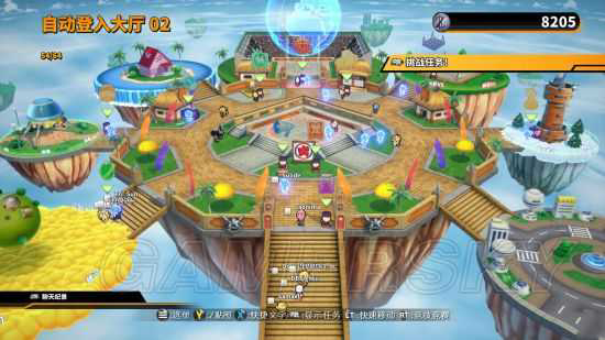 本作进入游戏后“START GAME”后就需要选择服务器联网,随后我们会进入一个像极了“商业广场”的地方。这里被称为“游戏大厅”每个玩家都会有一个Q版的替身在这里活动,在这个“大厅”内包含了游戏内所有功能的入口,所以这个“大厅”就是游戏的主菜单。