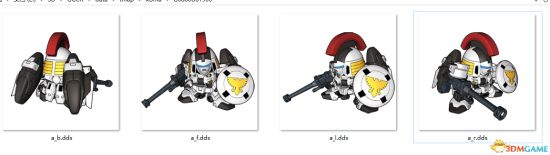 B F L R四个方向,MOVE对应地图移动动画,没有格式的文件,加后缀DDS即可,替换回去的时候记得把后缀去掉(部分机体拥有数个文件!请根据实际编号和解出来的图为准修改!毕竟变形和一些别的图也算同编号)