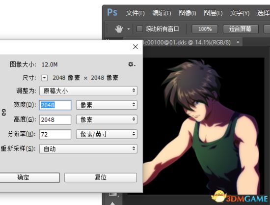 打开要修改角色的DDS,我们用自爆背心男为例,选图像,图像大小,可以查看这个图的分辨率,记住这个分辨率。