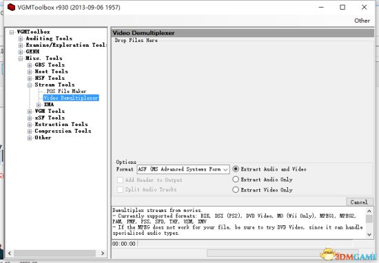 data\battle\scene\ms为机体文件,内部的文件夹对应机体的攻击动画,VGMToolbox选stream tools=>video demultiplexer=>format选择USM,然后把要提取的USM文件拖进去等待提取完毕即可。