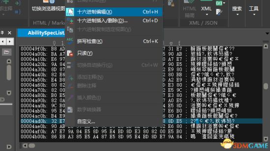 这时候我们看到的其实还是乱码的,右键16进制编辑。