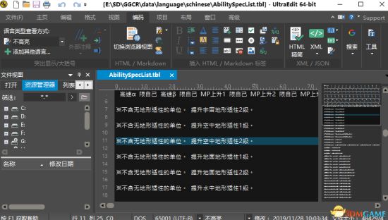 我们拿技能效果的文本举例,目录data\language内AbilitySpecList.tbl。
