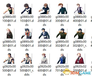 驾驶员立绘,驾驶员头像,机体头像,自制驾驶员立绘等(目前不知道如何查看这些DDS,疑似加密了打开是黑的,但是你们可以根据之前战斗立绘的编号确定哪个是哪个驾驶员,然后强行根据原图的尺寸自己新建做一个DDS替换破除加密)