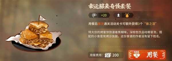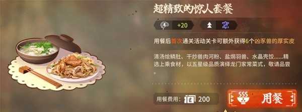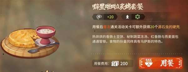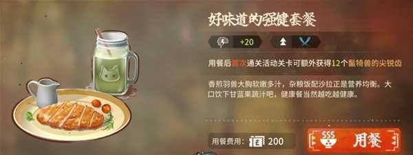 只要是是吃完饭之后,无论刷哪个关卡,都会给你一次用餐加成,