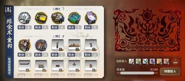 重构需要100点炼金值可以炼一次(以下简称抽)
