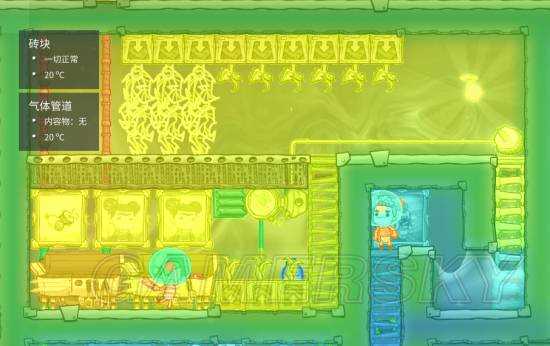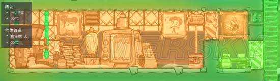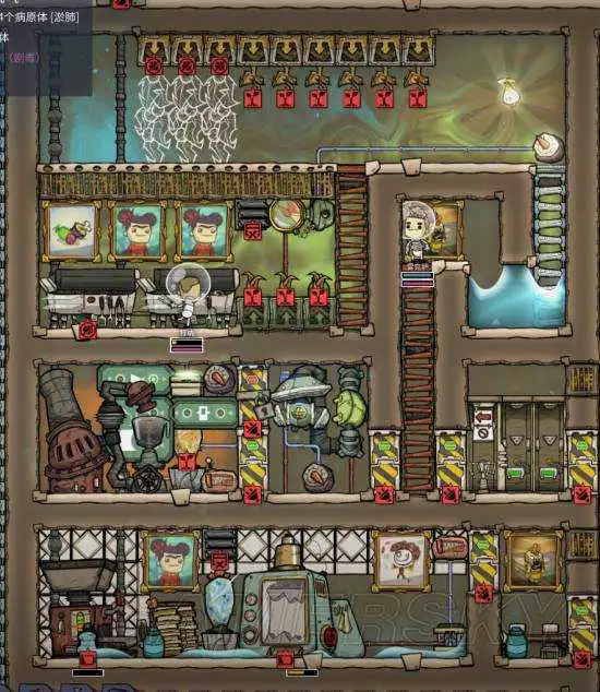 1.最下面一层,精炼金属/沙子厂房,一个冰萝卜负责降温,并且导入低温氧气降温,小人进入厂房保证供氧并且冷却环境,温度过高时断路器截断电路,待温度降下来重新开始制造。