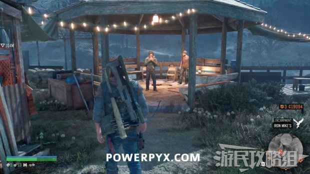 反复传送以加快时间流逝速度,燃油不够的时候在加油站补充,下午比较晚的时候快速回到【铁汉麦克营地】(计划好时间提前回去就行),到营地的时候应该是晚上7点左右,之后前往凉亭等待吉他手出现。