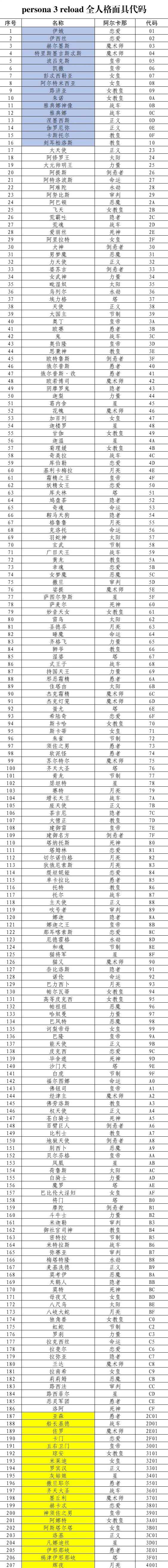 《女神异闻录3Reload(P3RE)》中人格面具种类非常多,想要知道它们代码的玩家请看下面“等待外星公主”带来的《女神异闻录3Reload(P3RE)》全人格面具代码一览,希望能够帮助大家。