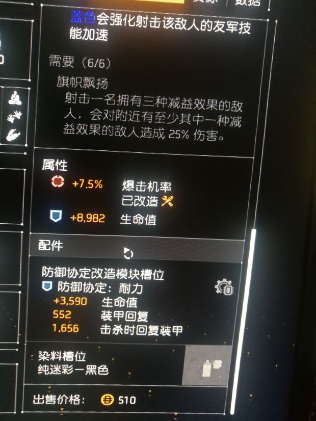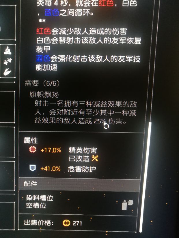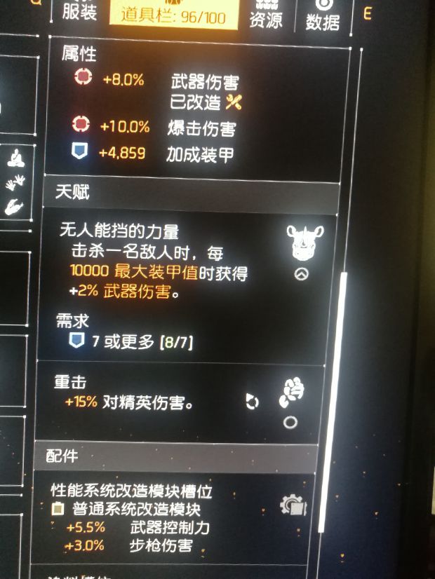装备属性简单粗暴地洗武器伤爆击几率爆击伤害就好了,【划重点】为什么说是最容易成型的BD,因为爱国者套很容易出红词条,且不需要像金装一样考虑(套装品牌)以及(天赋),因此只要简单粗暴地把高词条往上洗就好了,新的校准系统似乎没有校准上限,因此很容易堆出高武器伤高双爆。