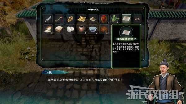 为了证明金玉钥的价值我们还需要给他展示价值证明书,随后我们就可以进入村长家中了。但贿赂仆役可以使用其他道具,因此黄玉钥匙建议保留以避免后期错过重要道具。