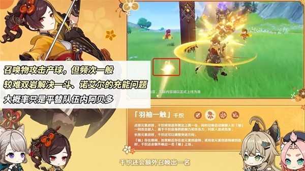从前瞻演示来看,千织身上的辅助能力可以说是近乎为0,主要依靠战技召唤物攻击与元素爆发出伤。可以说,千织就是一个纯输出型角色,主要优势全都是体现在自身伤害层面。