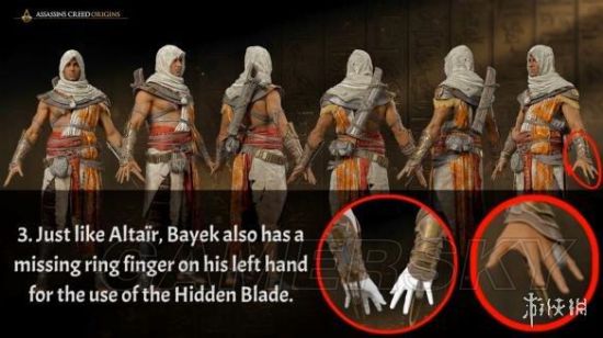 3.彼时的袖剑技术还处于起步阶段,所以巴耶克也和阿泰尔一样没有无名指以便操作袖剑。