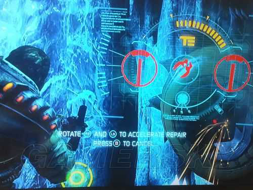4.之后与队友回合,正在锯开冰墙的推土机被冰锥砸到,导致头部损坏。这时出现大量乌贼,使用手枪可以轻松击杀掉。之后来到推土机的头部按X键,会出现三个红色表示,调整左右摇杆,使得红色表示变为白色标识就表示维修成功