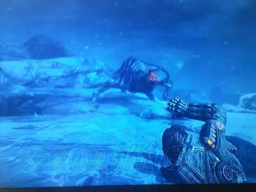 2.继续前进进入冰洞后,会有大批章鱼出现,杀伤力极其小,AI比较低,攻击方式为冲撞,基本不会躲避枪击。使用手枪射击其头部即可一枪消灭,射击身体需要两枪