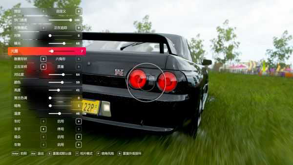 在游戏中体现为“动态模糊”效果,如果我们需要拍摄一张有“疾驰”感的照片,需要在行驶过程中进入相片模式,然后将快门速度调整至100(0-100),那么我们就能得到一张展现汽车行驶的照片了