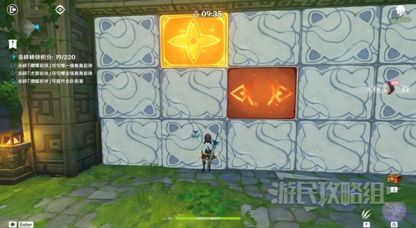 暗红色显示左右两边箭头的砖块为横爆岩块,可以消除一整排的岩块,比消除普通岩块所需的攻击次数要多,建议消除增幅岩块之后再用元素战技+普攻打。