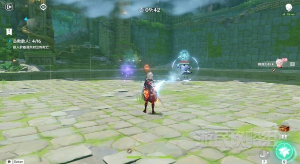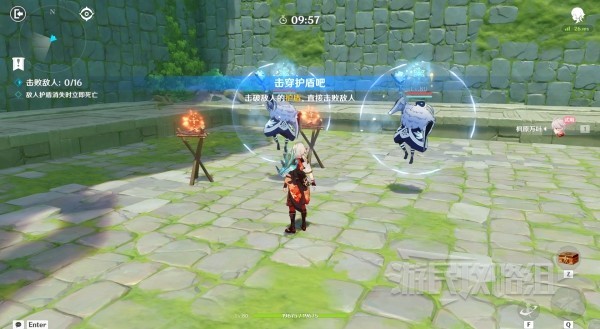 利用元素反应消除深渊法师的护盾将其直接击败,主要利用万叶的元素战技。例如出现冰深渊法师时,利用旁边的火把触发蒸发反应消除护盾即可将其消除。