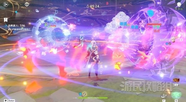 出现较多敌人时,可以利用万叶的元素爆发扩散火元素产生持续伤害,来持续触发火元素相关元素反应,将周围敌人的护盾全部破坏掉。若在多人模式则更无需注意什么,一起使用元素爆发即可。