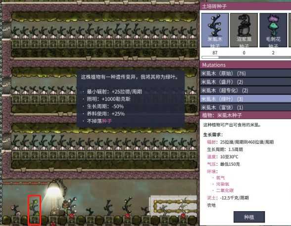 总结:按目前的实际情报看来,变异植株由于需要辐射控制,对游戏前中期并没有太大帮助,基本到后期永生档时,才会考虑选种育种。