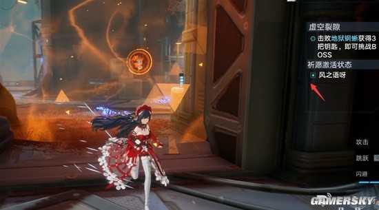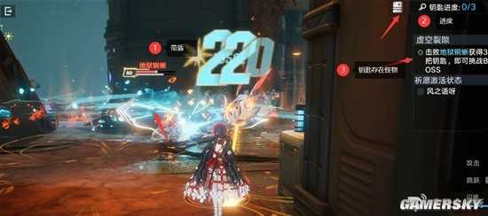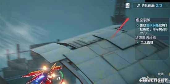 我们在界面右上角可以看到两行信息包括,钥匙进度需要3枚,怪物介绍:击败地狱钢蜥获得钥匙。所以我们在搜集buff时候顺手就要击败这类怪物收集buff,分辨方式很简单,认名字样貌或者攻击带盾就是了。